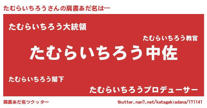| 女子向けラノベタイトル風あだ名 | 『たむらいちろうの玉の輿計画!』 |