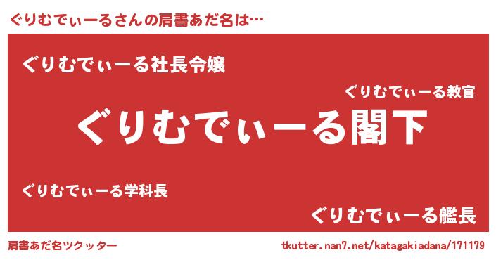| 女子向けラノベタイトル風あだ名 | 『ぐりむでぃーるなんてお断りですっ。』 |
