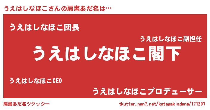 | 意味不明あだ名 | 『自称うえはしなほこ』 |