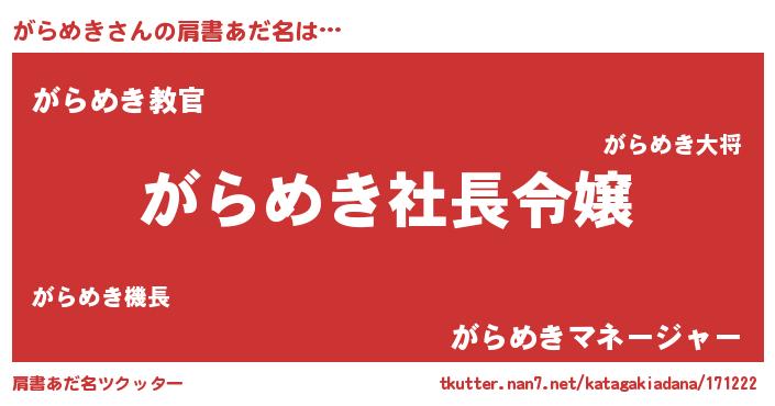 | ヘコむあだ名 | 『がらもー』『牛乳』『がらめき(爆)』 |