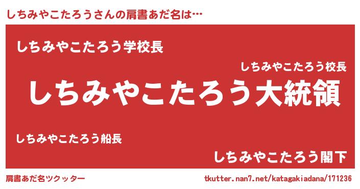 | 欧米人風あだ名 | 『しちみやこたろうクリステル』 |