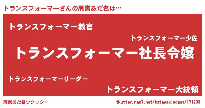 女子向けラノベタイトル風あだ名 | 『(仮)トランスフォーマーのやんごとなき事情』 |