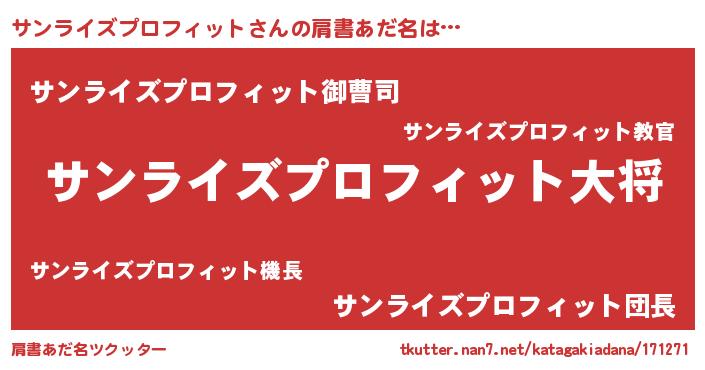 | 男性向けラノベタイトル風あだ名 | 『サンライズプロフィットスレイヤー』 |