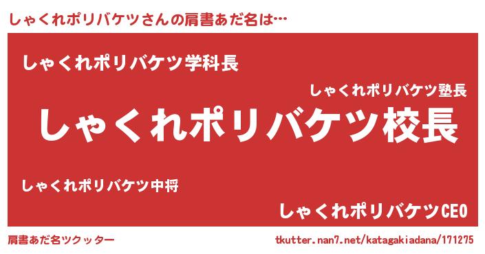 | 男性向けラノベタイトル風あだ名 | 『しゃくれポリバケツという概念が存在しない退屈な世界 』 |
