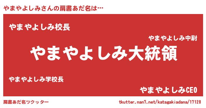| 女子向けラノベタイトル風あだ名 | 『やまやよしみの雑貨屋さん』 |