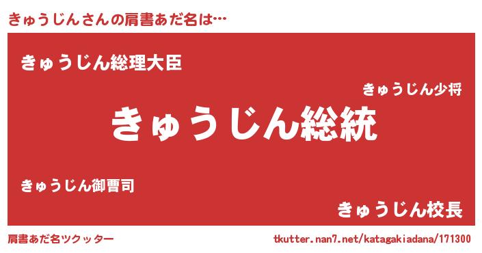| 意味不明あだ名 | 『自称きゅうじん』『永久保存きゅうじん』 |
