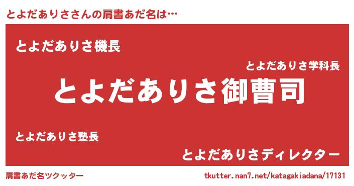 | 男性向けラノベタイトル風あだ名 | 『トヨダアリサアートオンライン』 |