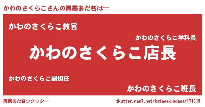 | ヒーロー風カッコイイあだ名 | 『スーパーカワノサクラコ』 |