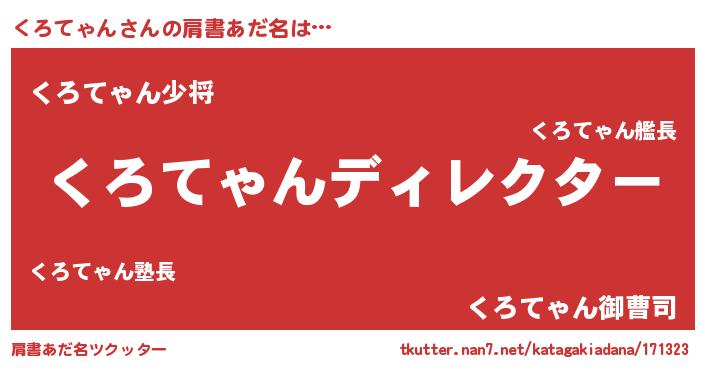 | 男性向けラノベタイトル風あだ名 | 『くろてゃんに滅ぼされるだけの簡単なお仕事です』 |