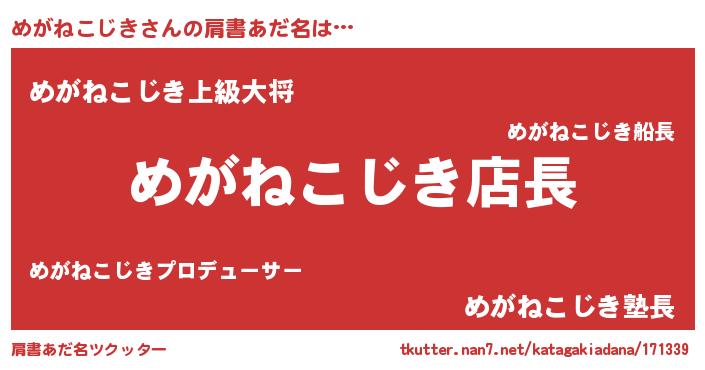 | 男性向けラノベタイトル風あだ名 | 『めがねこじきの憂鬱』 |