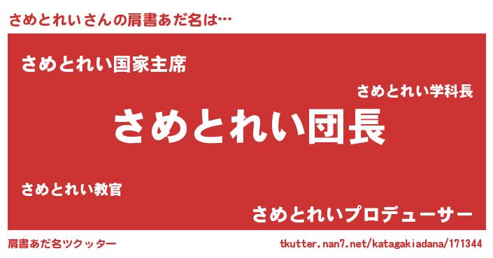 | 意味不明あだ名 | 『とにかく怪しいさめとれい』 |