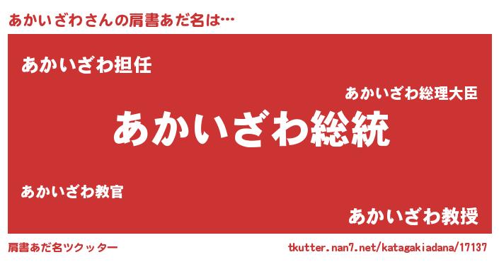 | 男性向けラノベタイトル風あだ名 | 『Re:あかいざわから始める異世界生活』 |