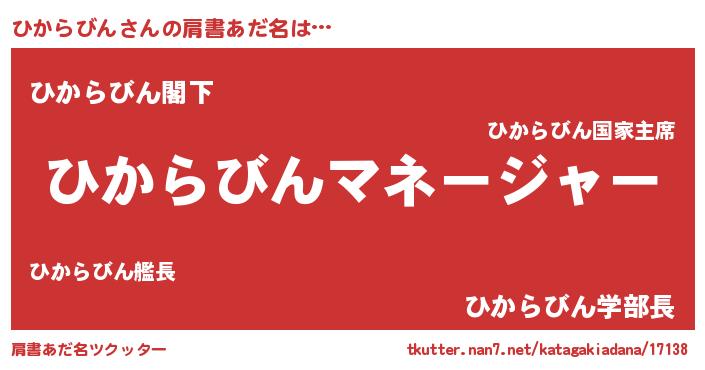 | 男性向けラノベタイトル風あだ名 | 『ひからびんに滅ぼされるだけの簡単なお仕事です』 |
