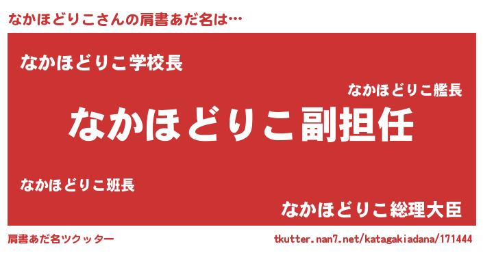 | ヘコむあだ名 | 『なかほどりこ(震え声)』『なまこ酢』 |