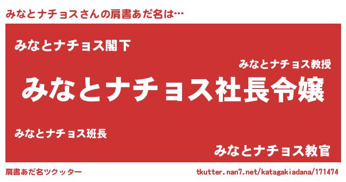 | 胡散臭い通販商品みたいなあだ名 | 『必ず成功する霊験あらたかなお札…その名も「みなとナチョス」』 |