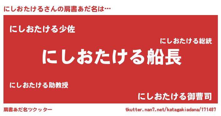 | ヘコむあだ名 | 『にしにー』『にしおたける(小並感)』 |