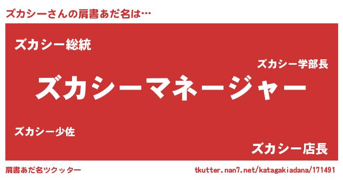 | 意味不明あだ名 | 『自称ズカシー』『ペロリンズカシー』 |