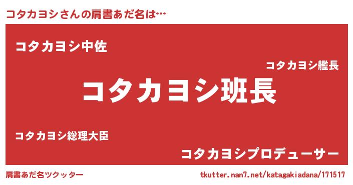 | 男性向けラノベタイトル風あだ名 | 『コタカヨシの嫁は女の子じゃないと思った?』 |