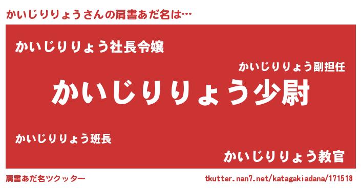 | 男性向けラノベタイトル風あだ名 | 『カイジリリョウスレイヤー』 |