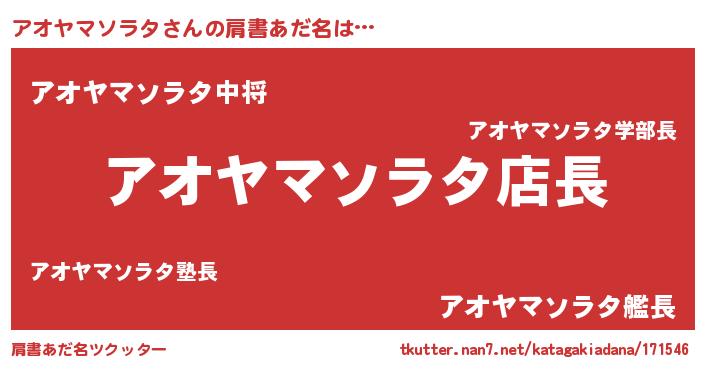 | 欧米人風あだ名 | 『マイケルアオヤマソラタ』 |