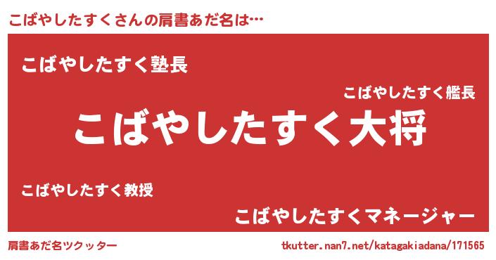 | ポケモン風あだ名 | 『コバキング』『ヒコバヤシタスク』 |