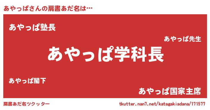 | ヒーロー風カッコイイあだ名 | 『正義の使者あやっぱ』『幻影騎士アヤ』 |