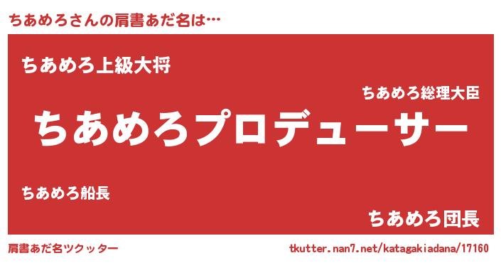 | 男性向けラノベタイトル風あだ名 | 『はたらくちあめろさま!』 |