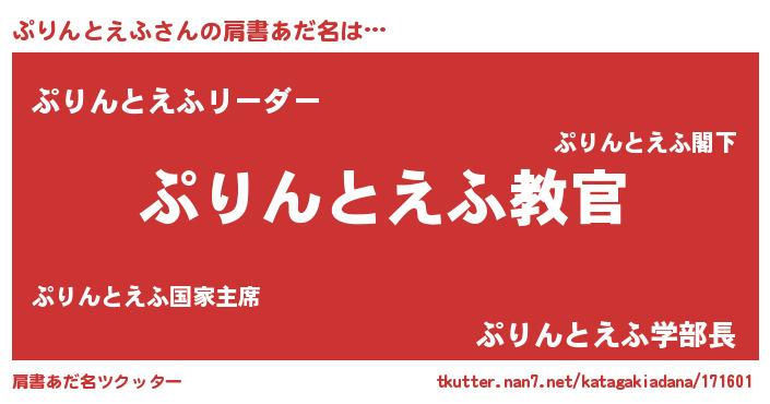 | 料理風あだ名 | 『ぷりんとえふのカルパッチョ風』 |