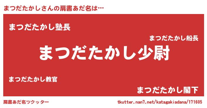 | ポケモン風あだ名 | 『マツキング』『ヒマツダタカシ』 |