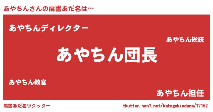 | ヒーロー風カッコイイあだ名 | 『天弓騎士アヤ』『ネオアヤチン』 |