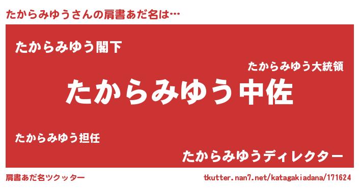 | 恥ずかしいあだ名 | 『タカラミユウデラックス』『たかっちょ』 |
