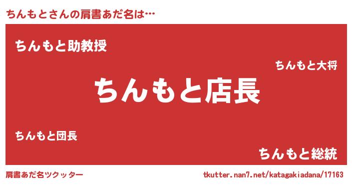 | 男性向けラノベタイトル風あだ名 | 『ちんもとの憂鬱』 |