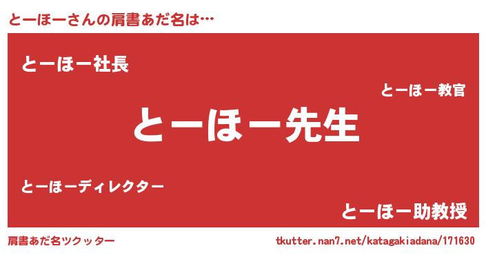 | ヒーロー風カッコイイあだ名 | 『ネオトーホー』『スーパートーホー』 |