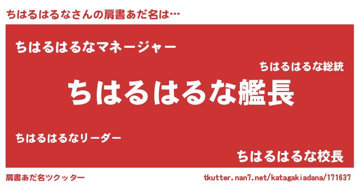 | ヒーロー風カッコイイあだ名 | 『ネオチハルハルナ』『黄金騎士チハ』 |