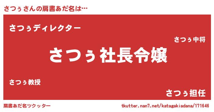 | 欧米人風あだ名 | 『マイケルさつぅ』『アンジェラ・さつぅ』 |