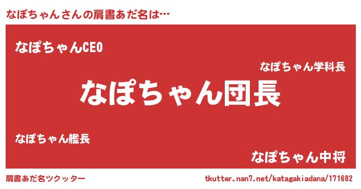 | 男性向けラノベタイトル風あだ名 | 『なぽちゃんの嫁は女の子じゃないと思った?』 |