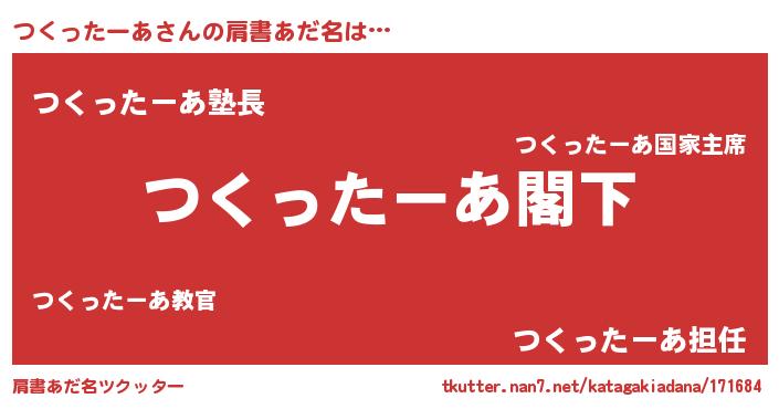 | 意味不明あだ名 | 『自称つくったーあ』 |