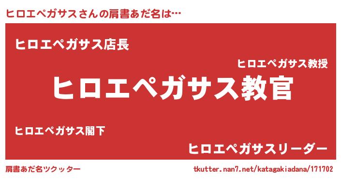 | 意味不明あだ名 | 『住所不定無職ヒロエペガサス(91歳)』 |