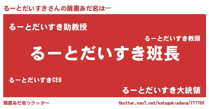 | 男性向けラノベタイトル風あだ名 | 『るーとだいすきの嫁は女の子じゃないと思った?』 |