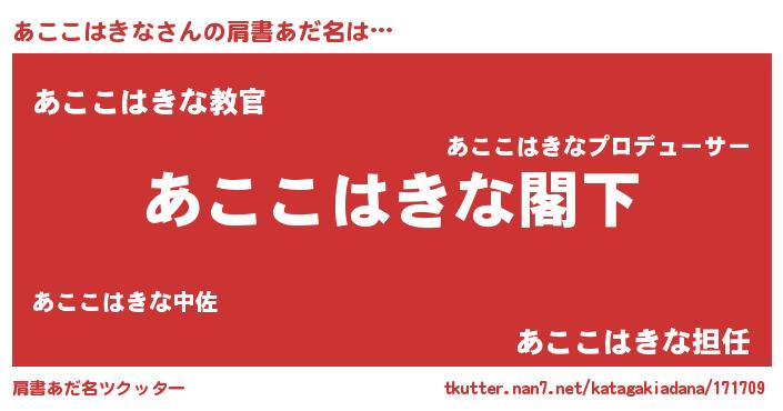 | 女子向けラノベタイトル風あだ名 | 『あここはきななんてお断りですっ。』 |