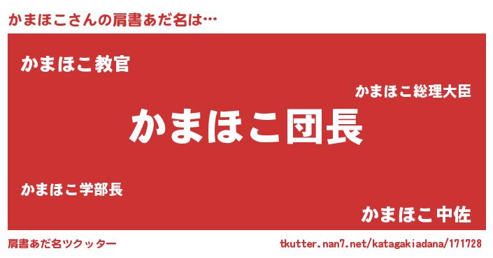 | 意味不明あだ名 | 『とにかく怪しいかまほこ』 |
