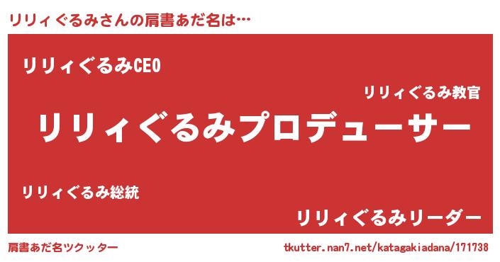 | 意味不明あだ名 | 『ペロリンリリィぐるみ』 |