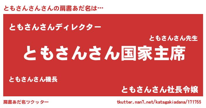 | 意味不明あだ名 | 『ともさんさんフォーエバー』 |