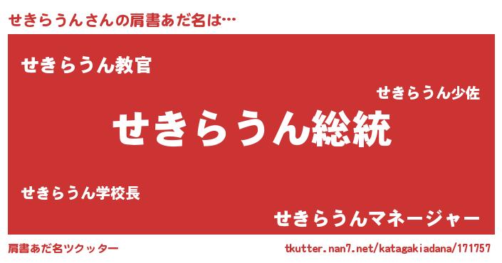 | 意味不明あだ名 | 『自称せきらうん』 |