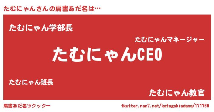 | 意味不明あだ名 | 『ペロリンたむにゃん』『自称たむにゃん』 |