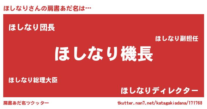 | ヒーロー風カッコイイあだ名 | 『幻影騎士ホシ』『ネオホシナリ』 |
