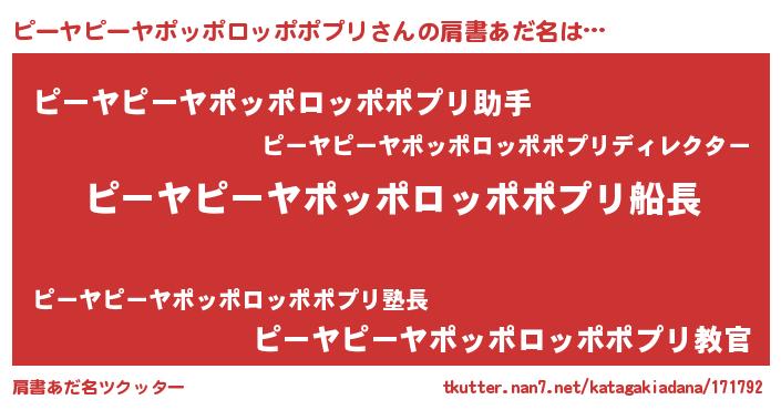 | ヒーロー風カッコイイあだ名 | 『慈愛の使者ピーヤピーヤポッポロッポポプリ』 |