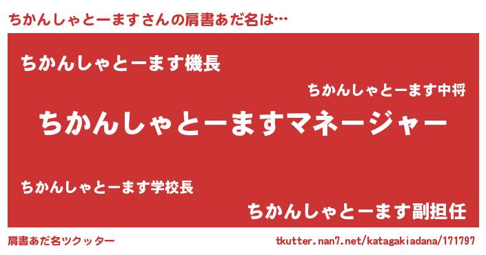 | 意味不明あだ名 | 『永久保存ちかんしゃとーます』 |