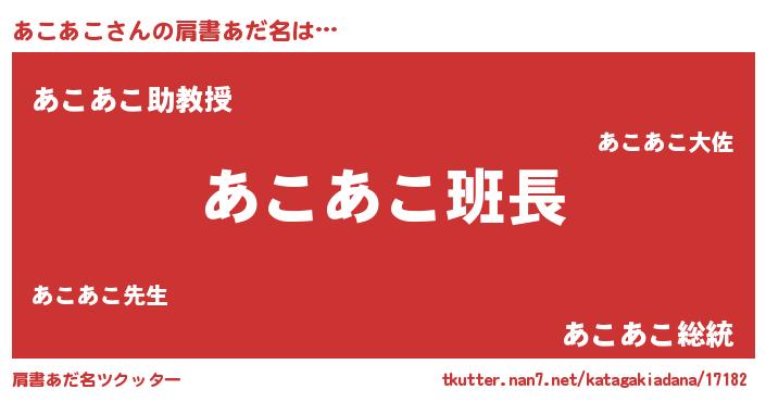 | 意味不明あだ名 | 『とにかく怪しいあこあこ』 |