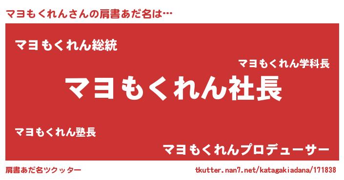 | 胡散臭い通販商品みたいなあだ名 | 『必ず成功するブレスレット…その名も「マヨもくれん」』 |
